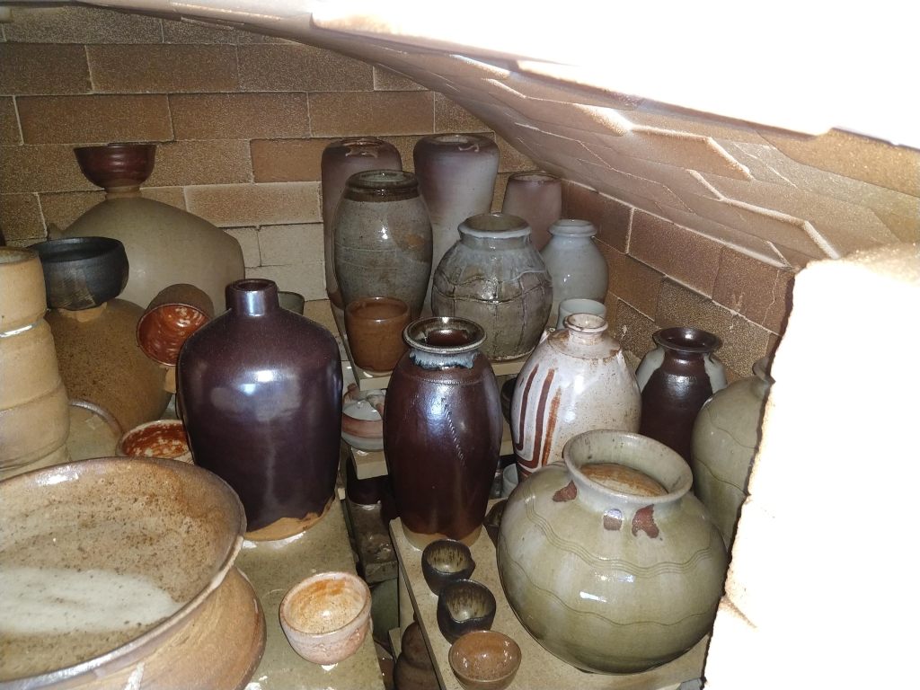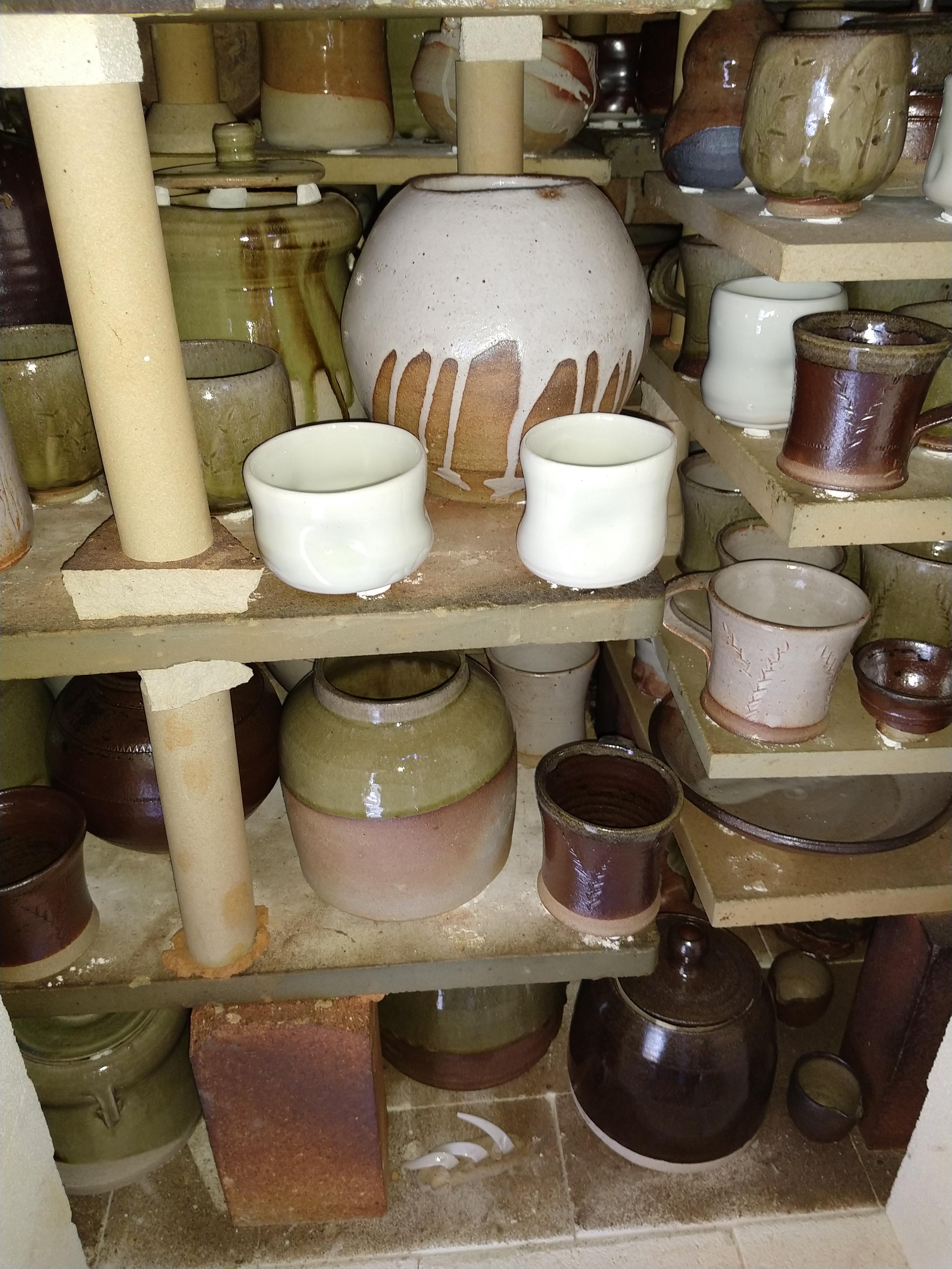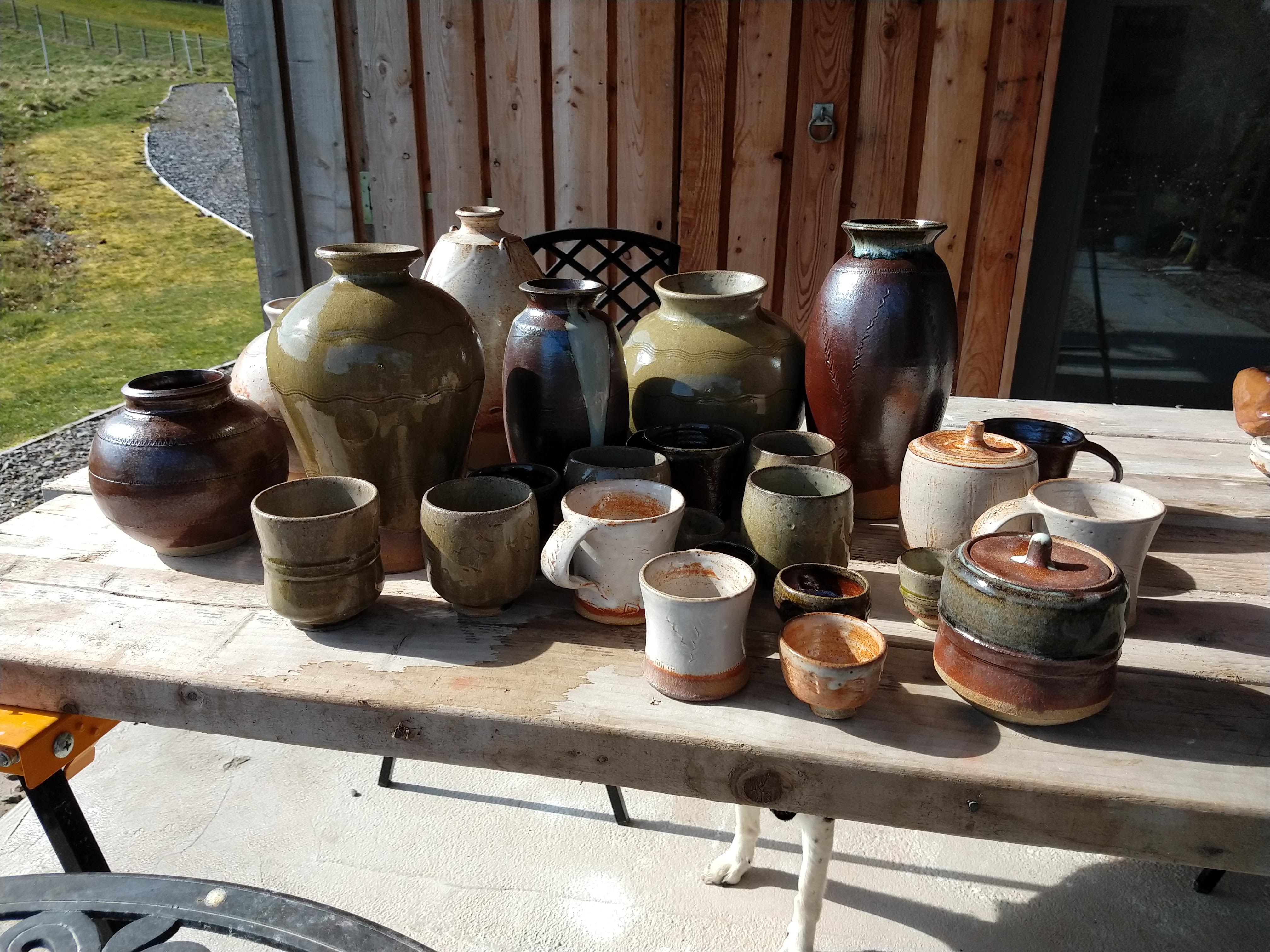 Met up with Marcus O’Mahony and Jim Behan in April at Gledfield Mill to fire the woodfired klin at Ardgay, Scotland. We did a longer firing over two days and reached a much higher temperature, cone 12 went down at top of kiln. We might have rather over fired the kiln! However we got some very good ash glaze effect with lots of nice melting and beautiful ash glaze droplets. We had great time and enjoyed meeting up with Marcus and Jim after such long time due to the pandemic.