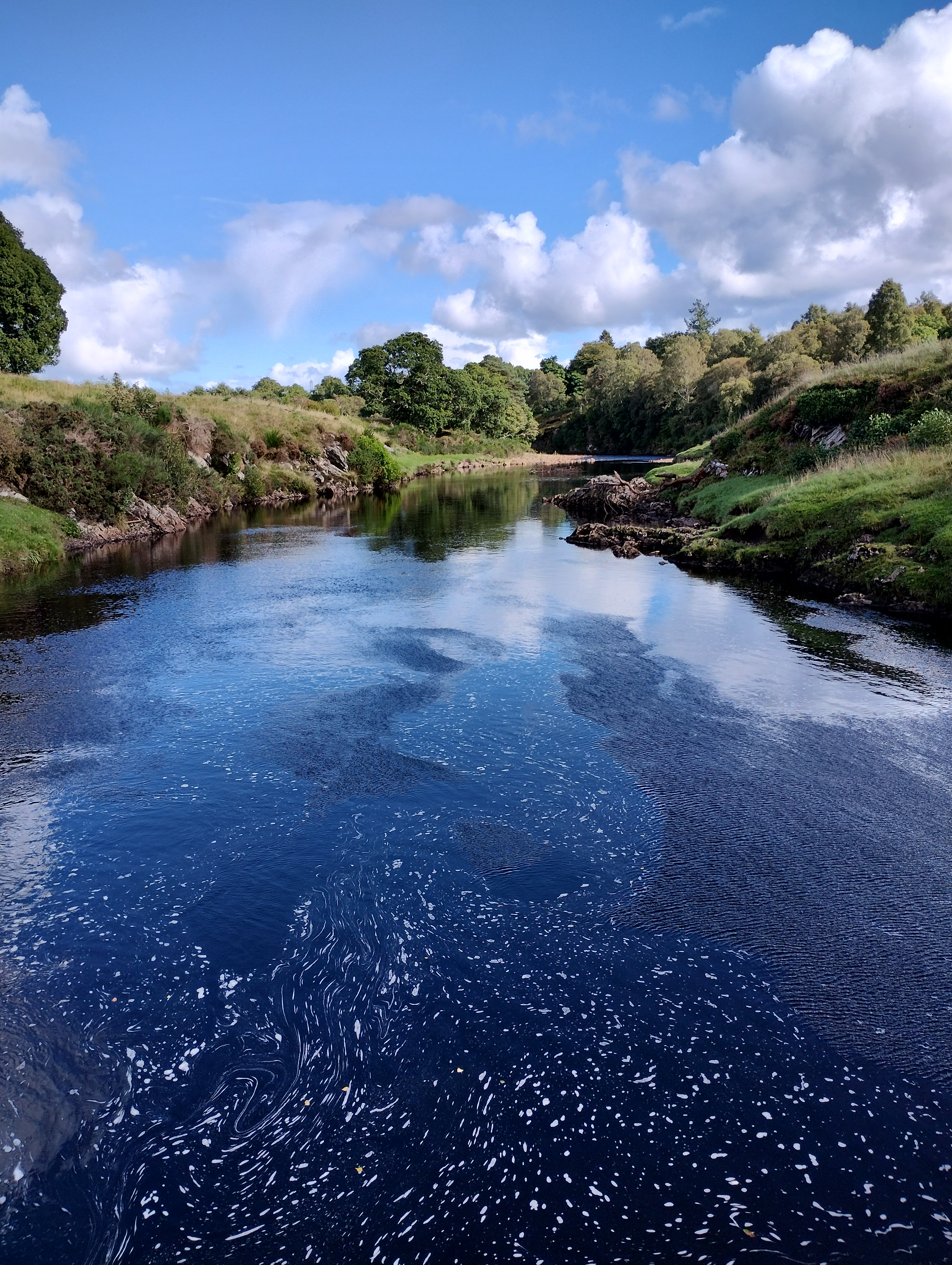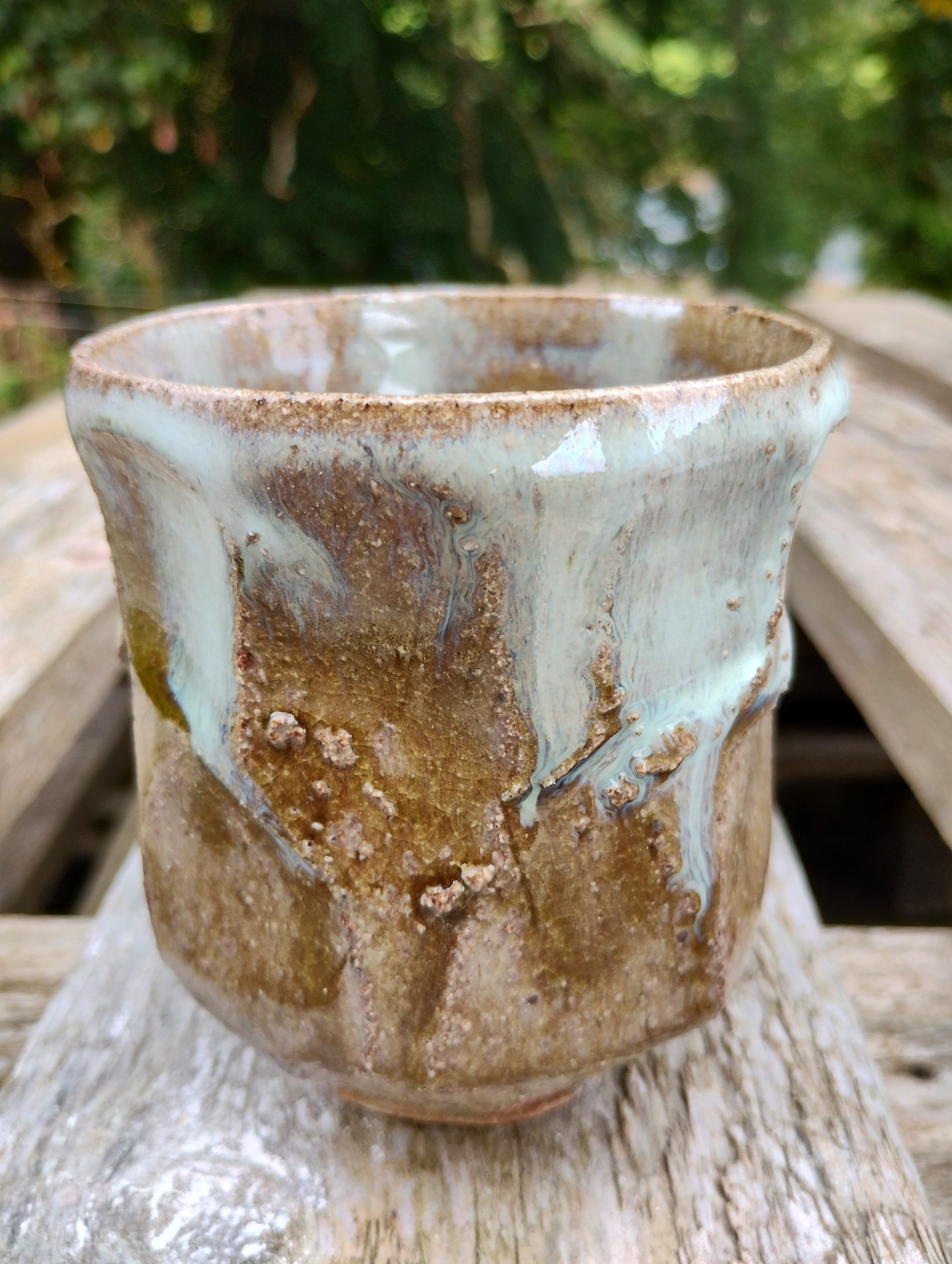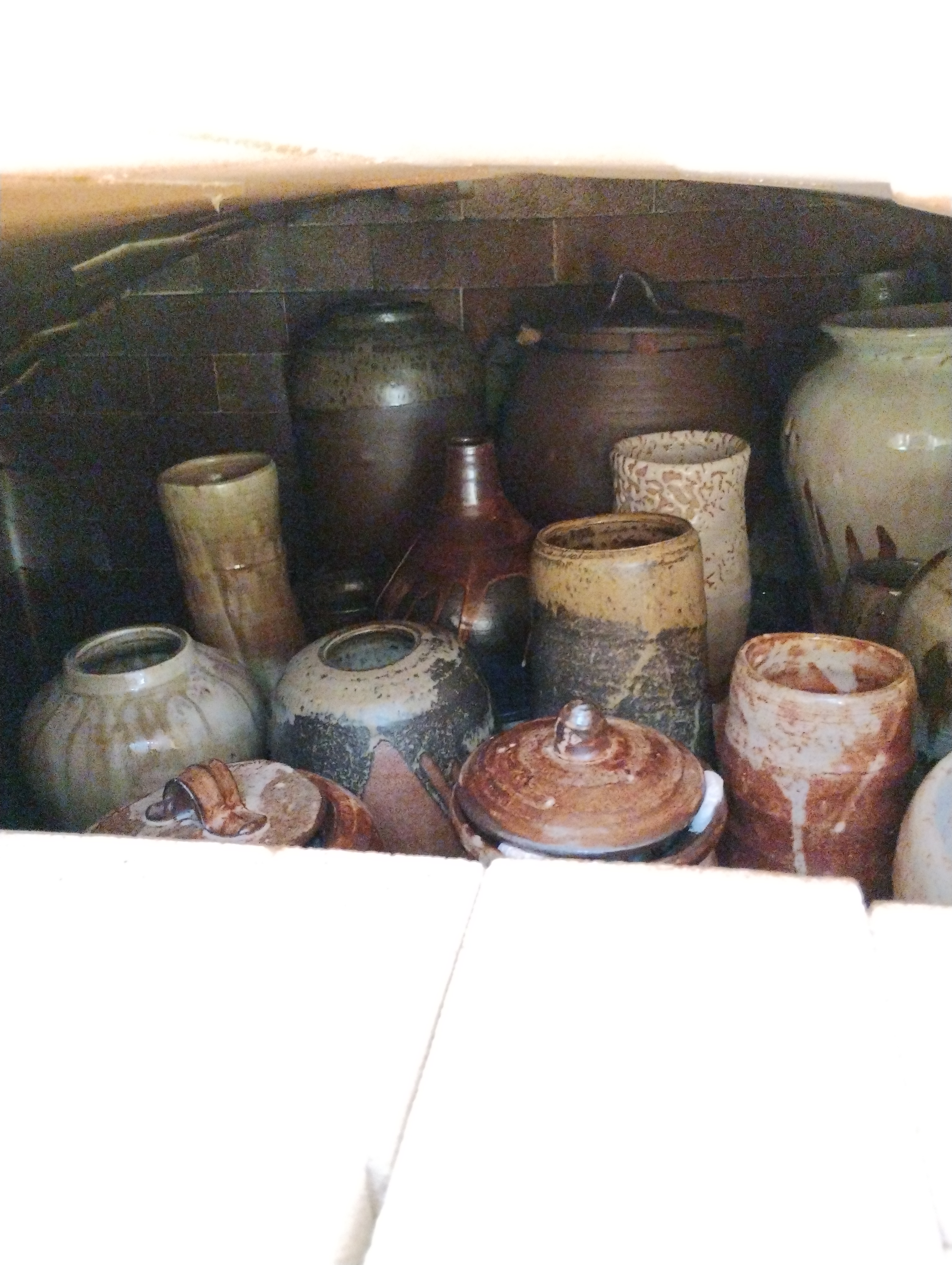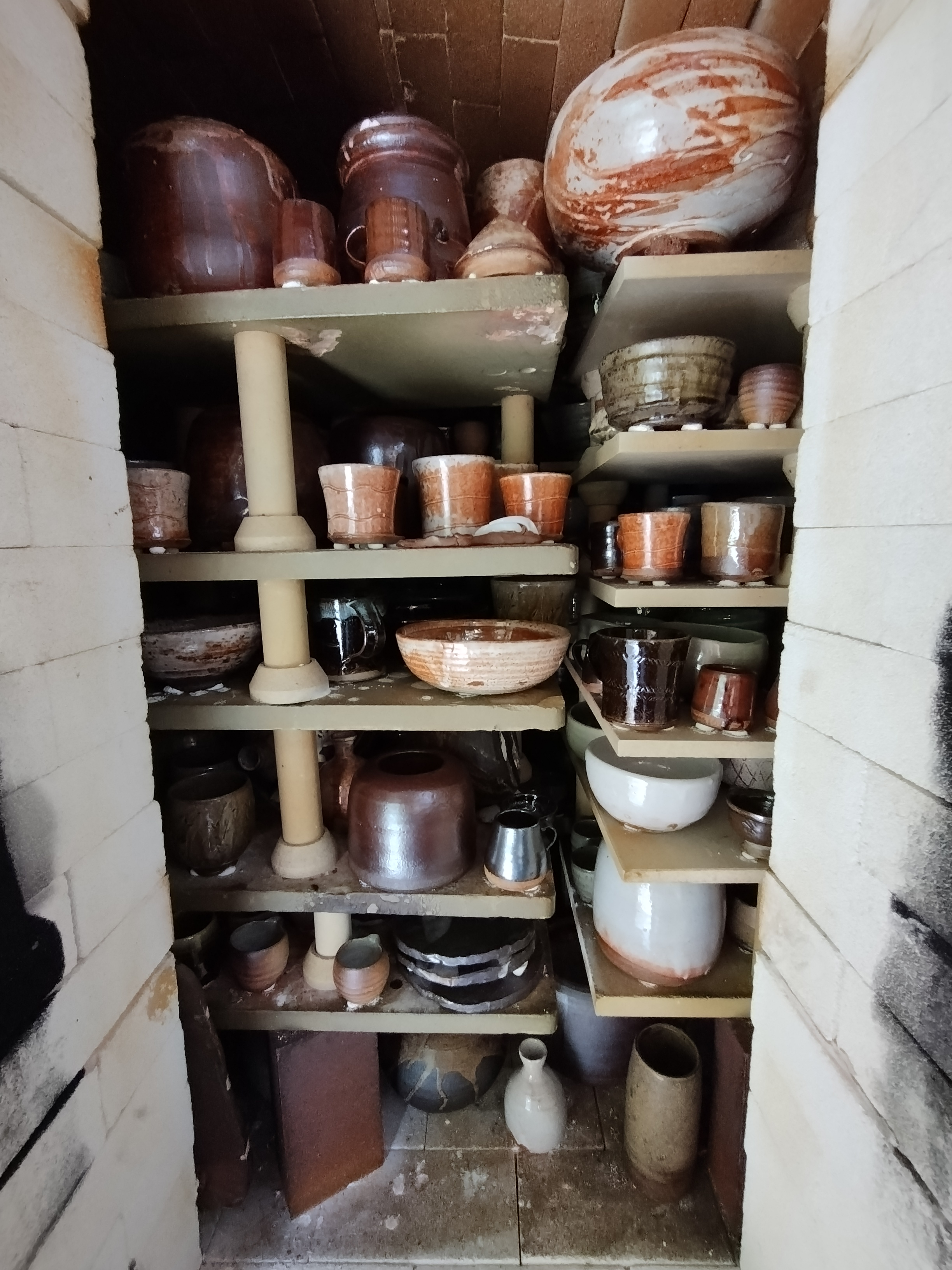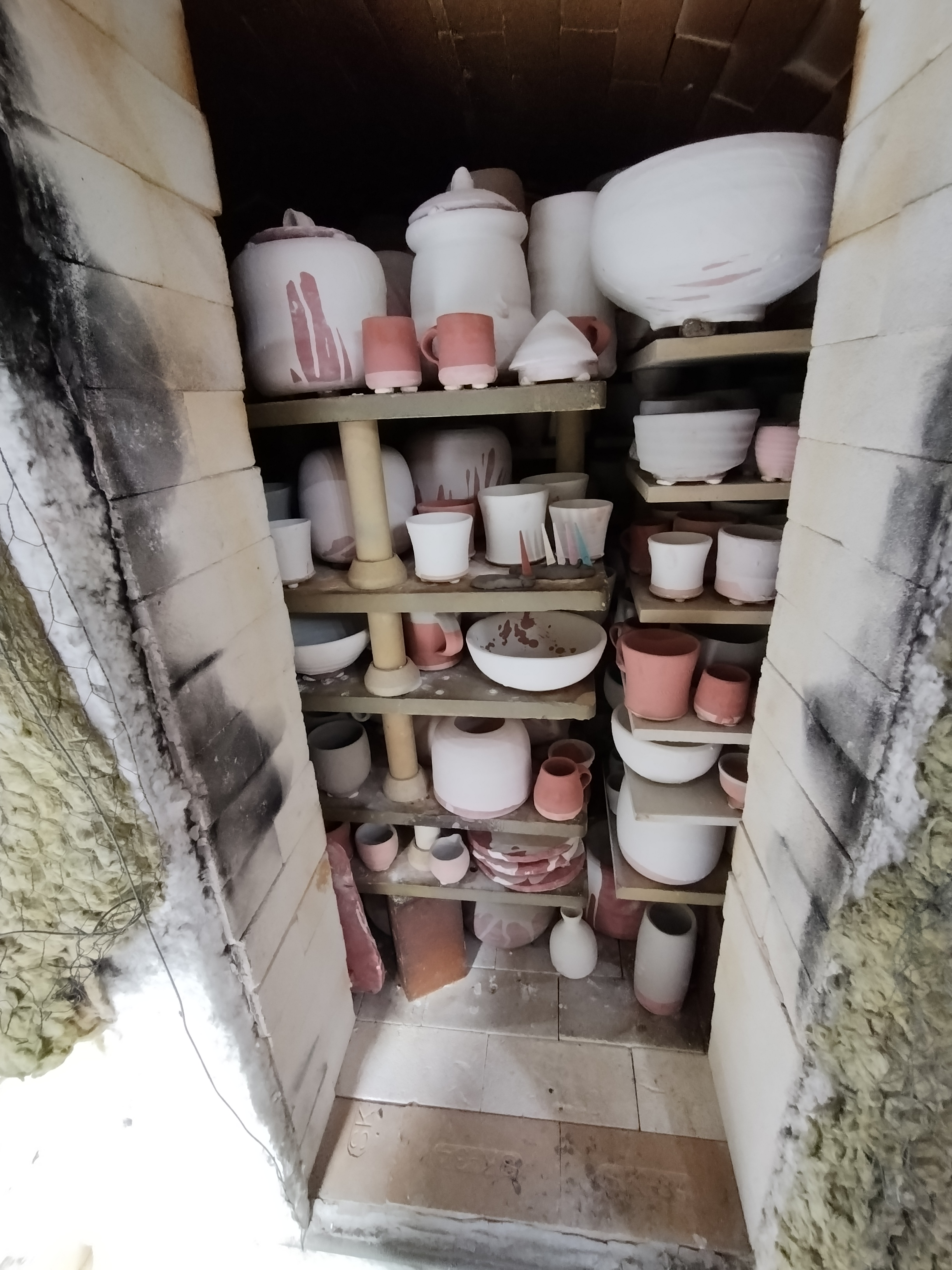 Travelled up to Scotland in glorious weather to firing Nigel’s kiln in Arday. Couldn’t have been more different than the snow and ice from the firing in March! I even had dip in the River Carron which flows behind the kiln it was so hot. As ever Nigel had loads of pots to glaze and fire and had already loaded about half the kiln before I arrived. We had a leisurely two days to finish glazing and loading the kiln. We put the gas burning on gently over night to dry out the pots and Nigel started firing the kiln around 6am. I joined him at around 7:30. The weather was a bit damp but now we have the “Mason Extension” added to the kiln shed we kept pretty dry. The firing went smoothly and we reached 1000C Cone 010 pretty easily and did a reduction for about an hour and a half. The final push to cone 10 went well with the usual slight stalling at around 1230C. We even got to 1300C on the pyrometer. We did a soak for an hour and finished firing 19:30. We visited Lotte Glob Danish potter who lives by Loch Eriboll on our rest day while the kiln cooled. As usual opening the kiln was filled with anticipation. We had lots of nice pots with some good effects from the Tenmoku glaze which I was pleasured with. There were also some great melts from ash glaze. Over all we considered it one of best firings.