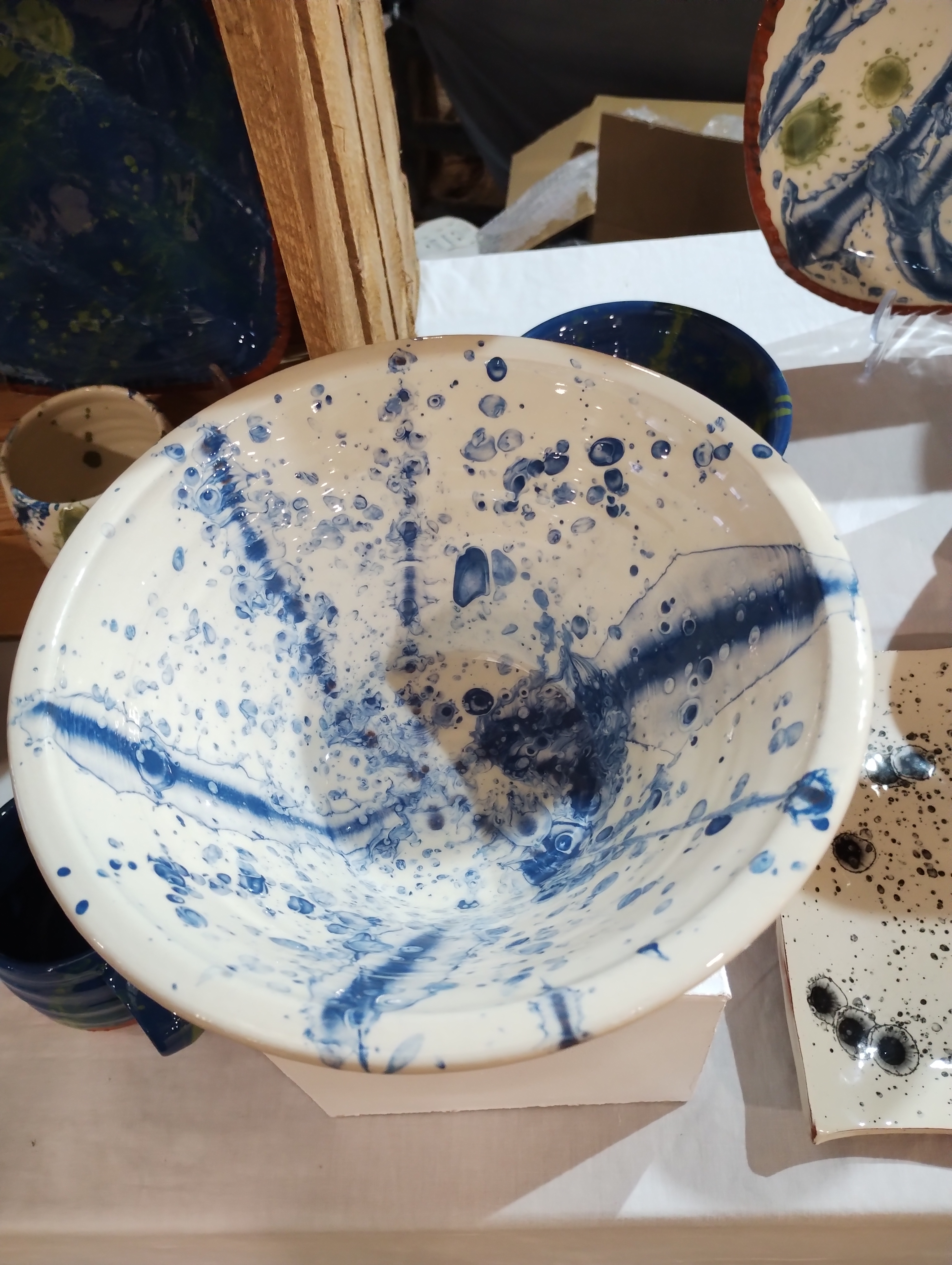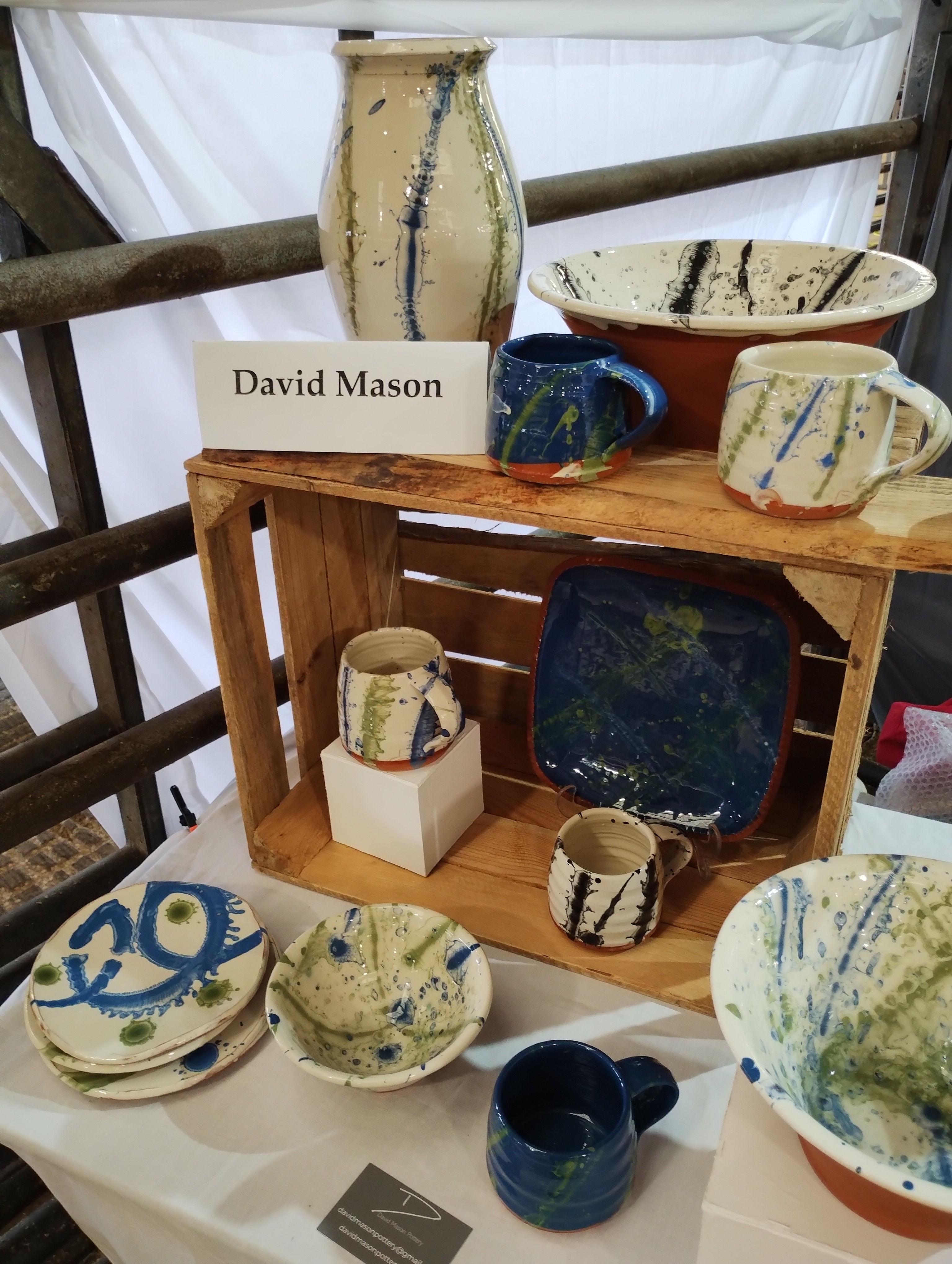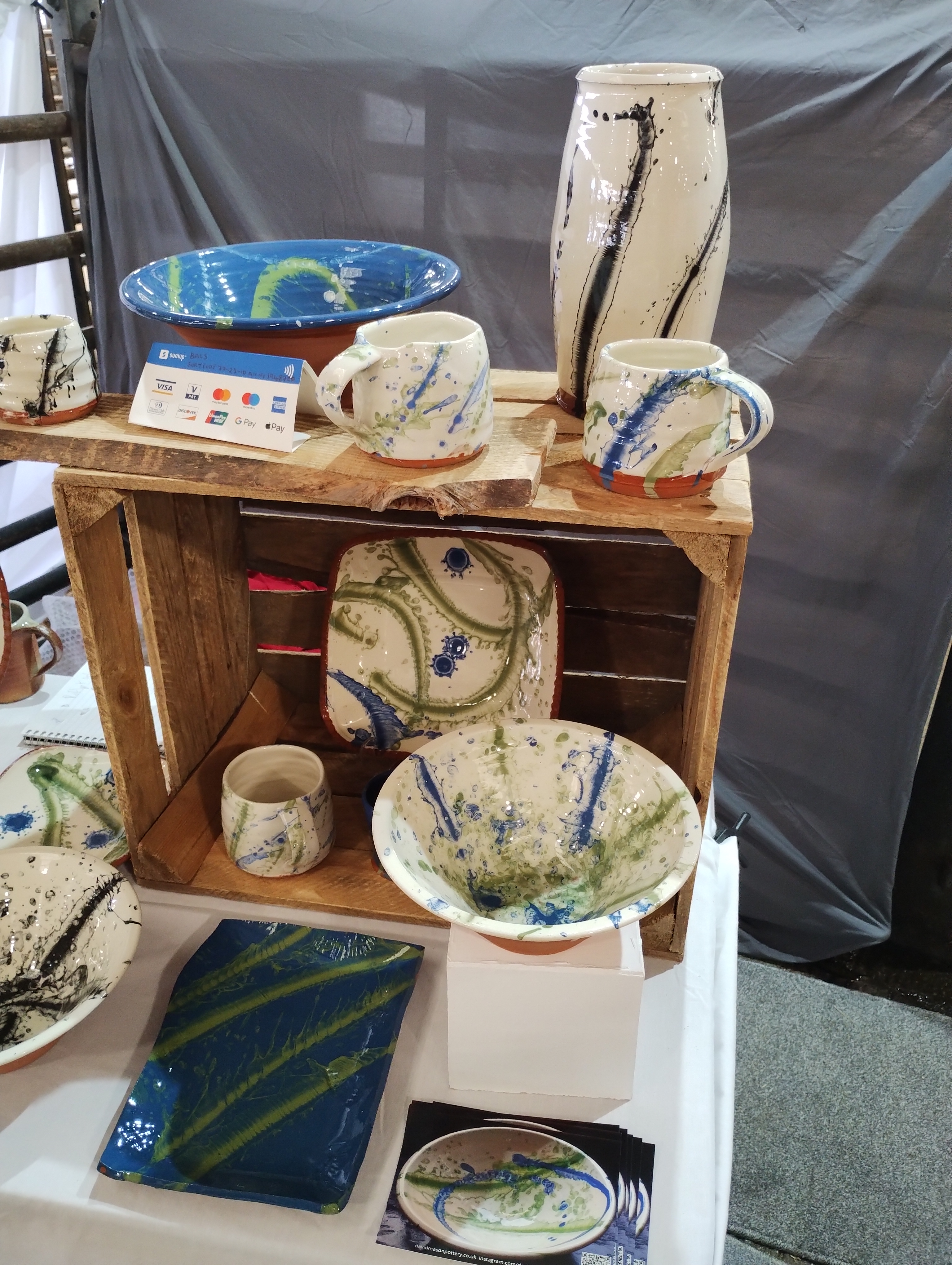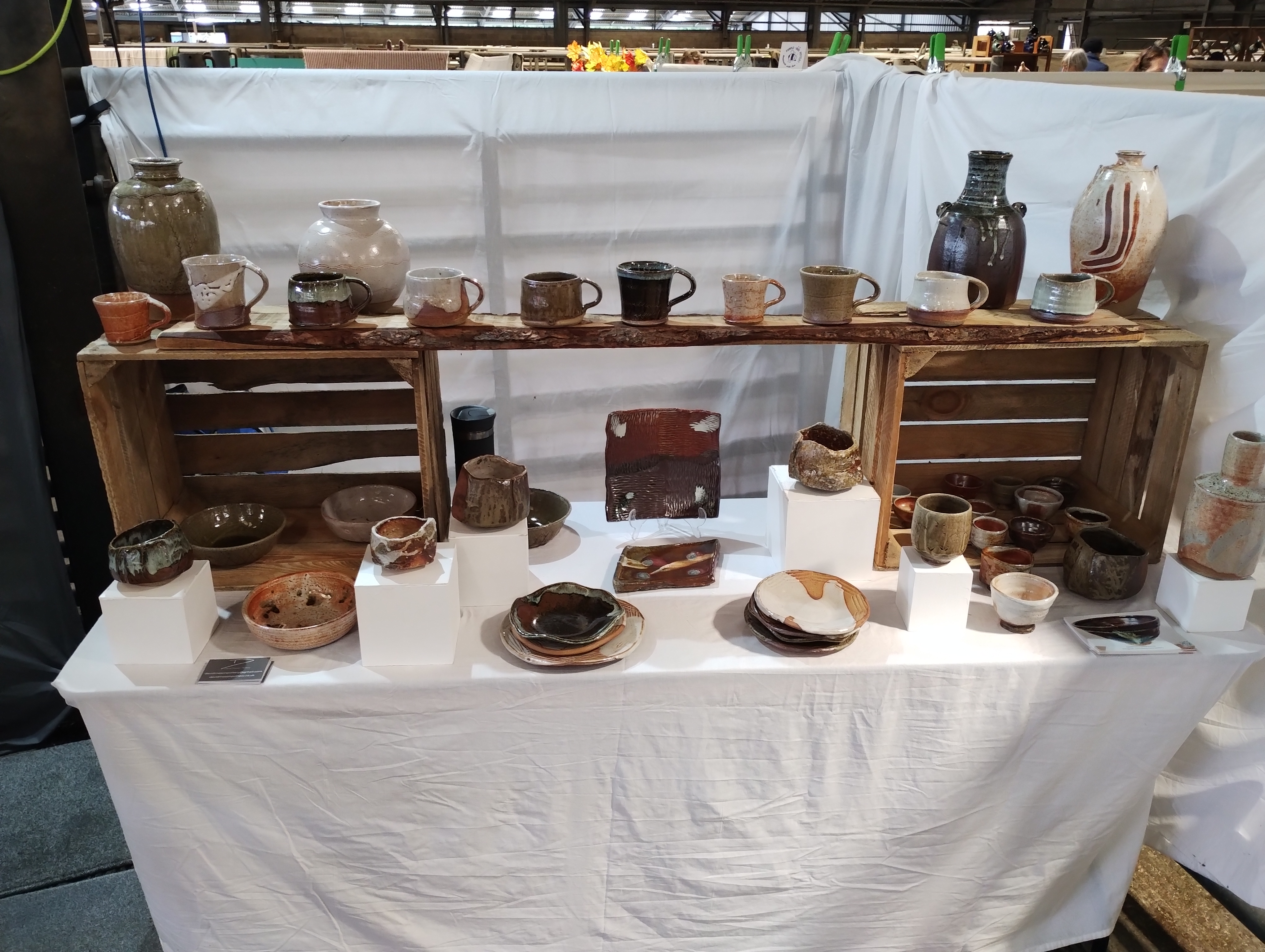 I was fortunate enough to have a stall at Potfest in Penrith. There were over 100 potters and there was a great atmosphere. It was lovely to meet so many other potters. The show ran over three days and there was a good foot fall. The weather was very changeable with heavy rain and high winds and sunny spells. It was gratifying to have so much interest in my pots and what I do. I really enjoyed chatting to people who came to my stall. Thank you to everyone who bought my pots.